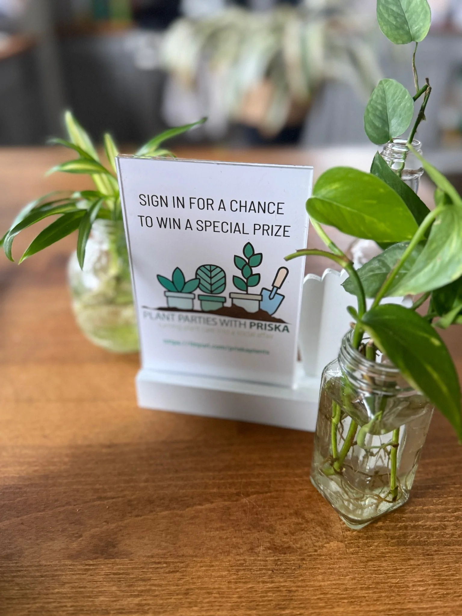 Party favor for guests: Priska’s Plant Basics Guide+ a decorative mason jar with plant cuttings (yours or mine :)